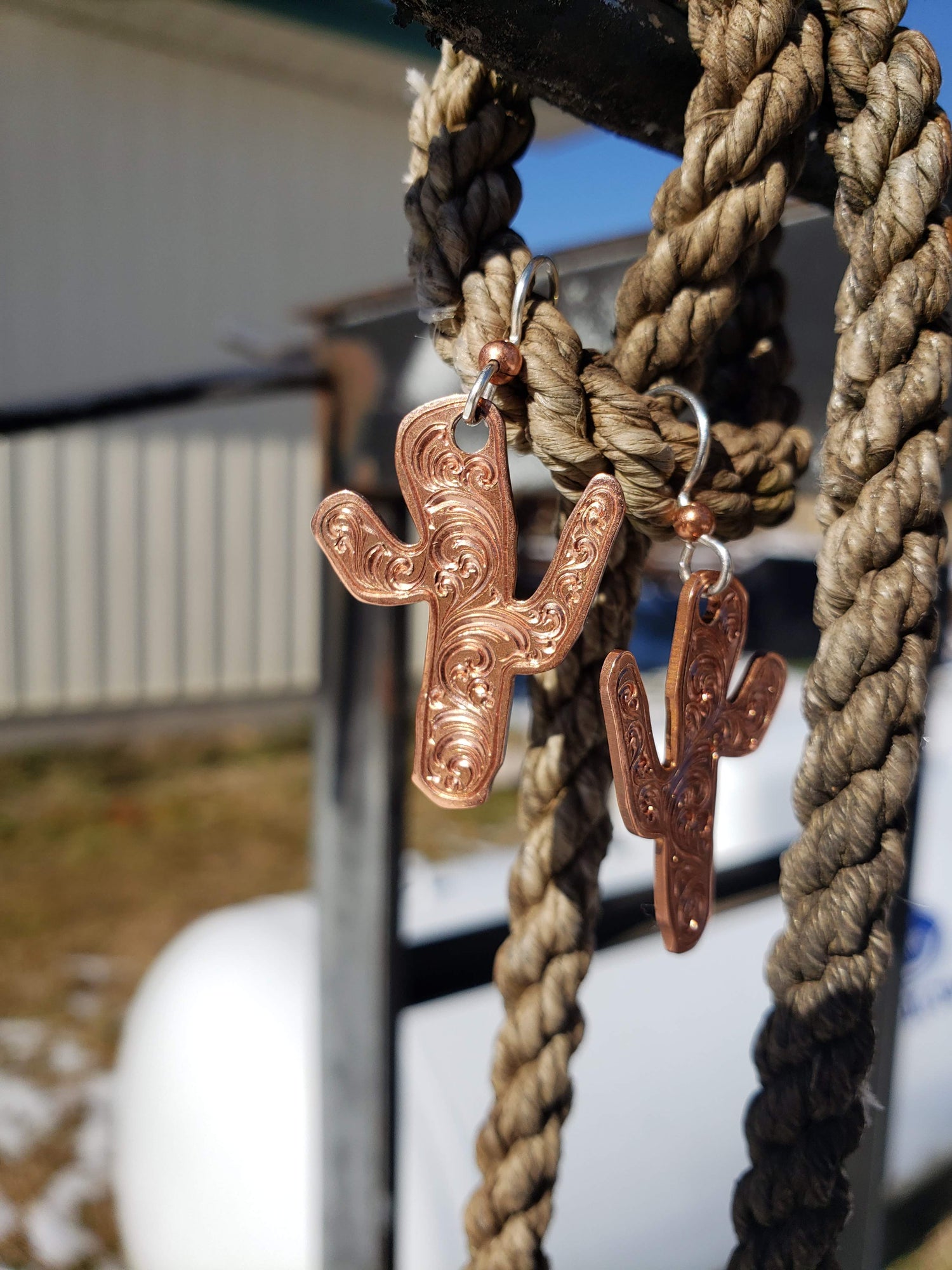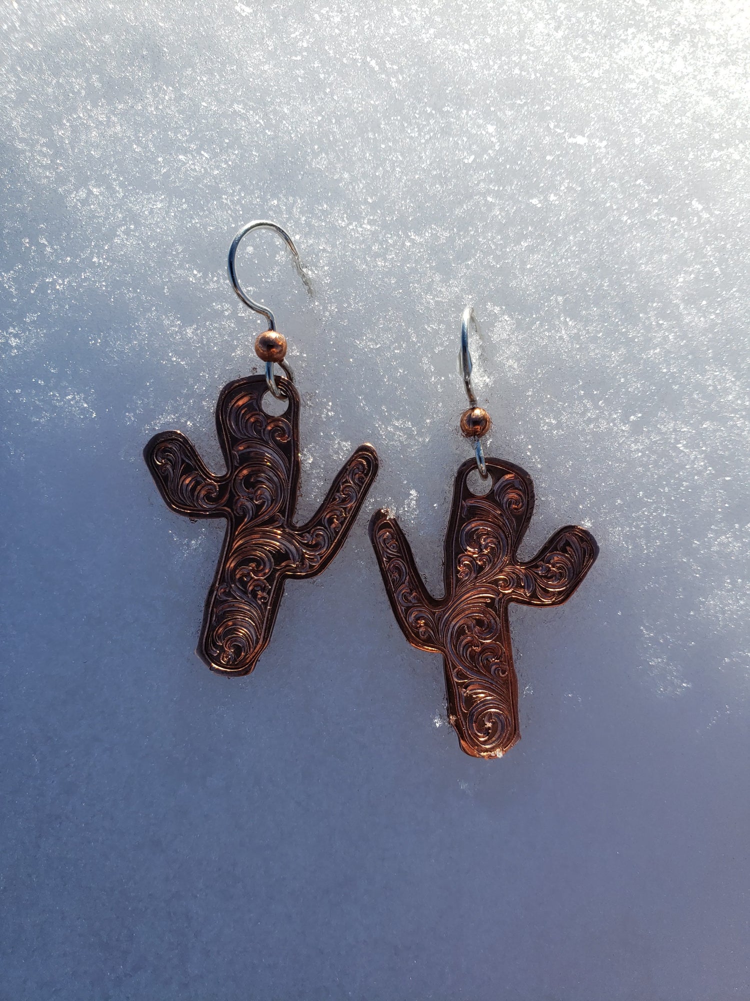 Cactus inspired Copper Engraved Hand Engraved Earrings, Metal Fashion, Western Bright Cut, Gifts for Her