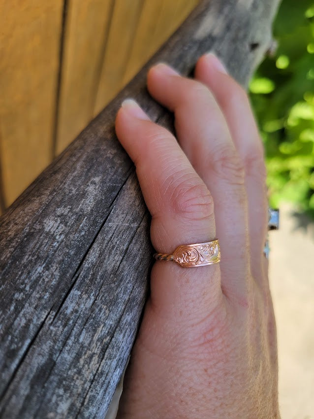 The Kit: Copper Western Engraved Signet ring with Rope Band, Bridesmaids Rings, Gift for her,