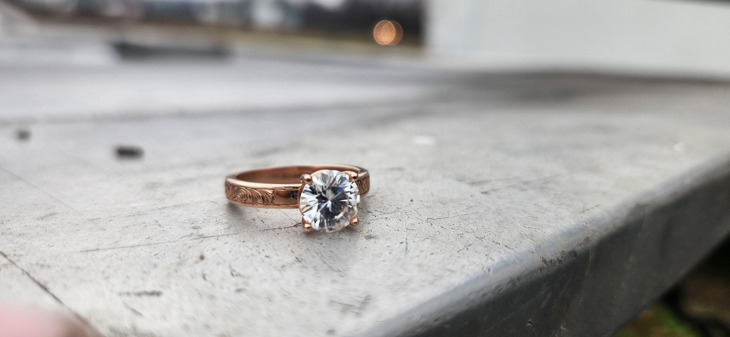 The Cora: Rose Gold Ring, Western Engagement Ring, Hand-engraved rose gold ring, Cowgirl Engagement, Western Women's ring