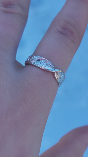 The Mavis: 5mm Sterling Silver or Gold Hand-Engraved Twisted Band, Western Wedding Band, Stackable Cowgirl Anniversary Ring, Western Band for Her, Western Ring