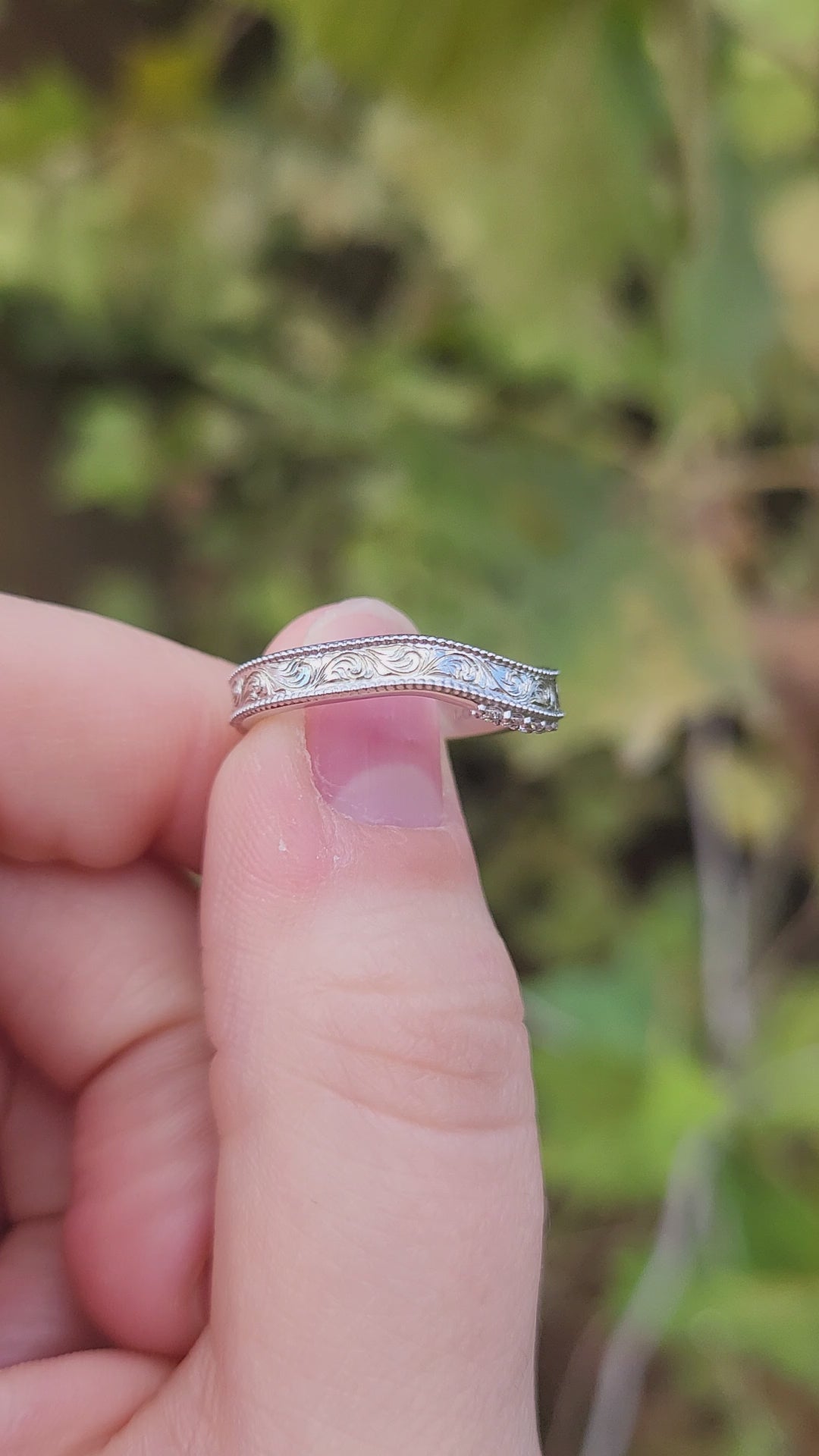 The Savannah: Contour Band with Upraised Milgrain Detail, Hand-Engraved Center, and Diamond Accents, Western Hand-Engraved Wedding Band, Cowgirl Wedding Ring