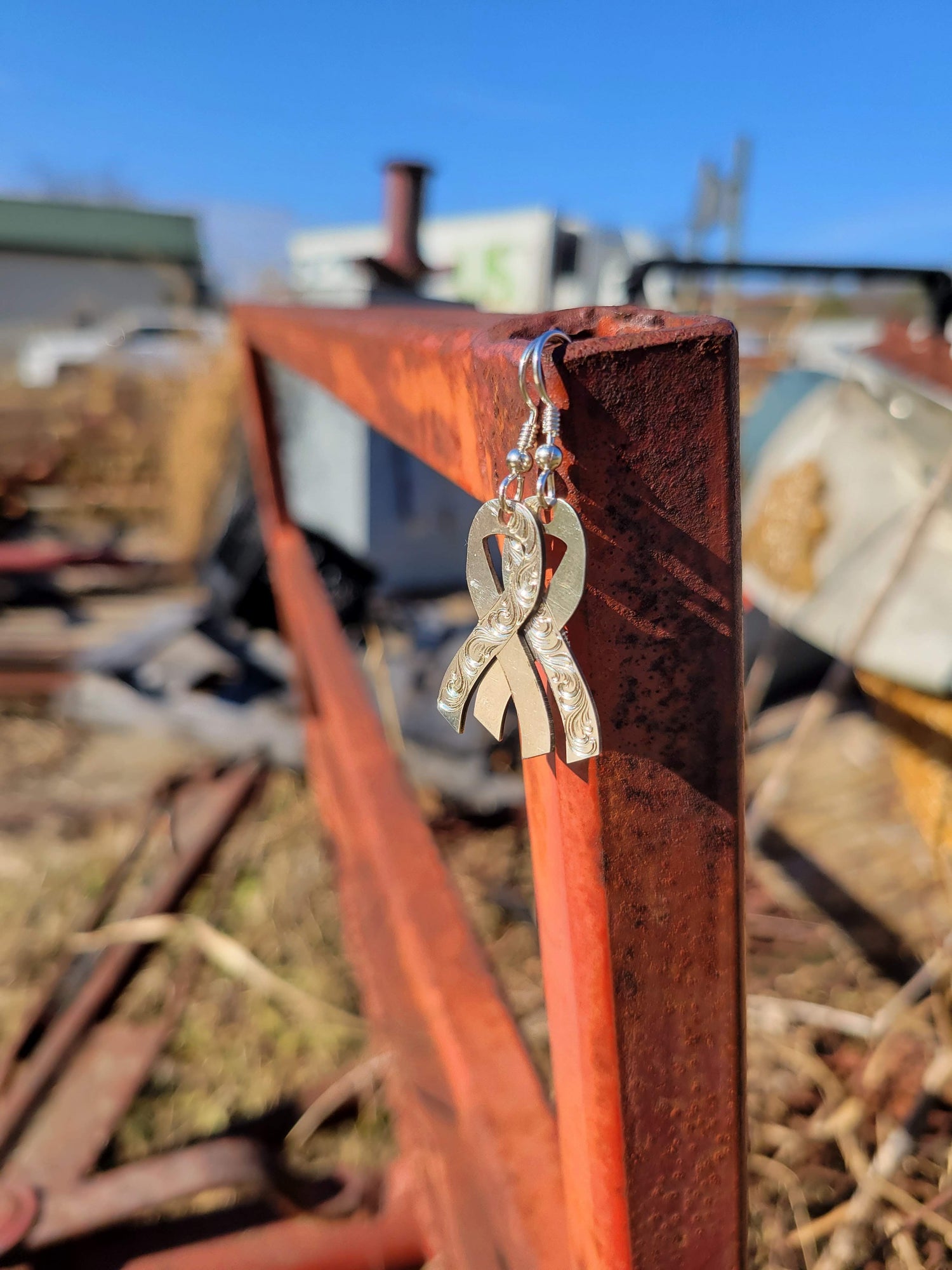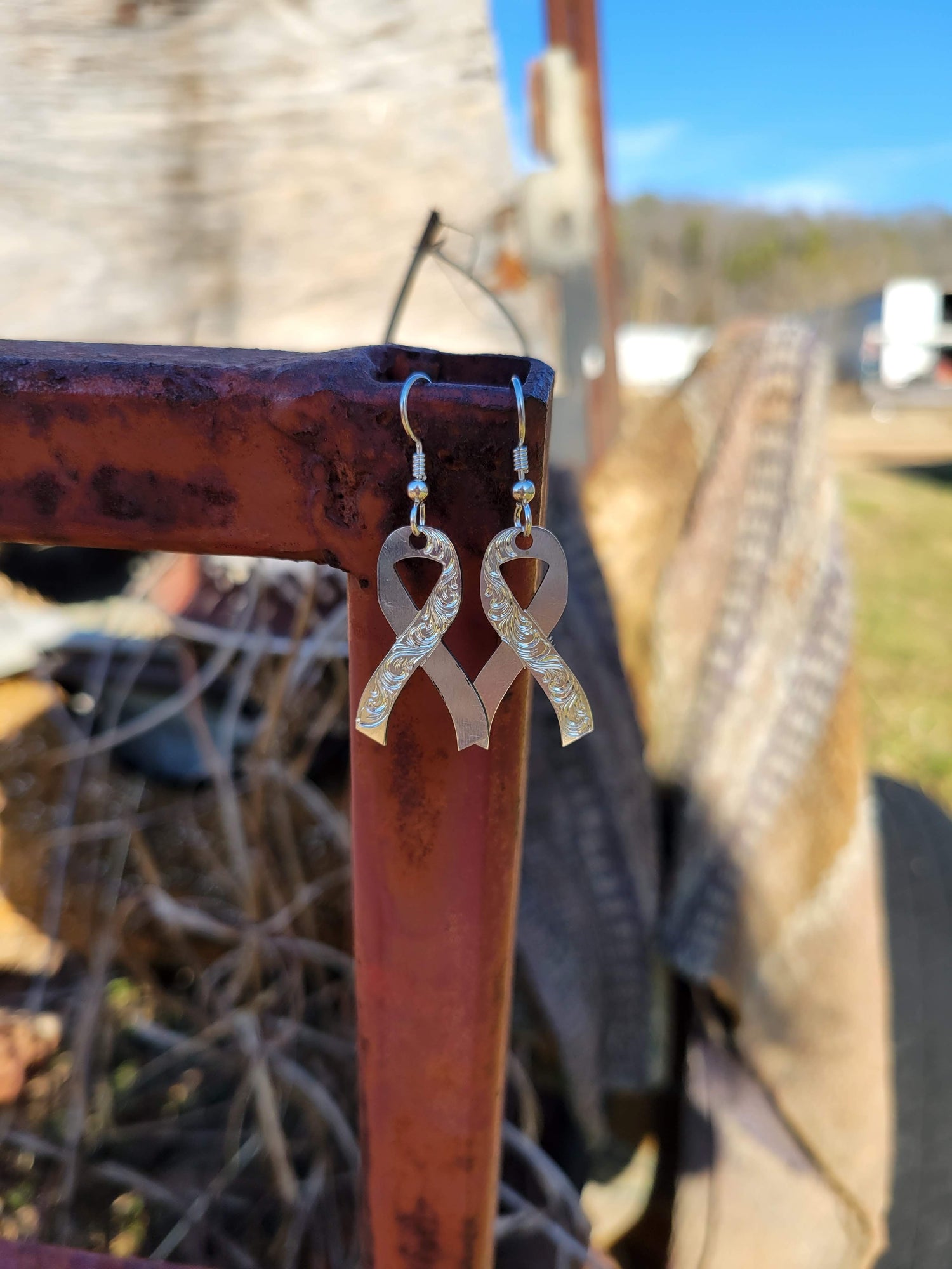 Courage Earrings: Silver Cancer Ribbon Earrings, Cancer support jewelry, Western Jewelry, Cancer Ribbon Earrings, Cancer Ribbon Jewelry