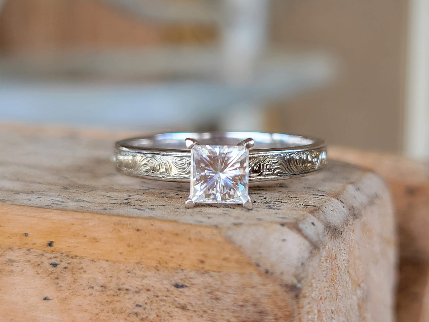 The Talia: 10K, 14K, or 18K White Gold Engagement Ring with 1ct Brilliant cut Moissanite Princess Stone, Western Engagement Ring