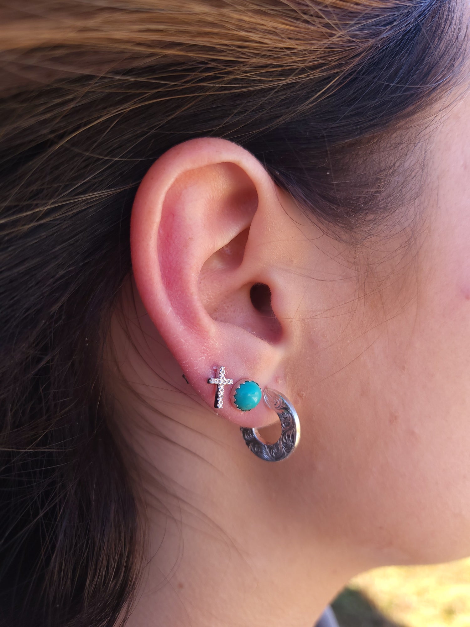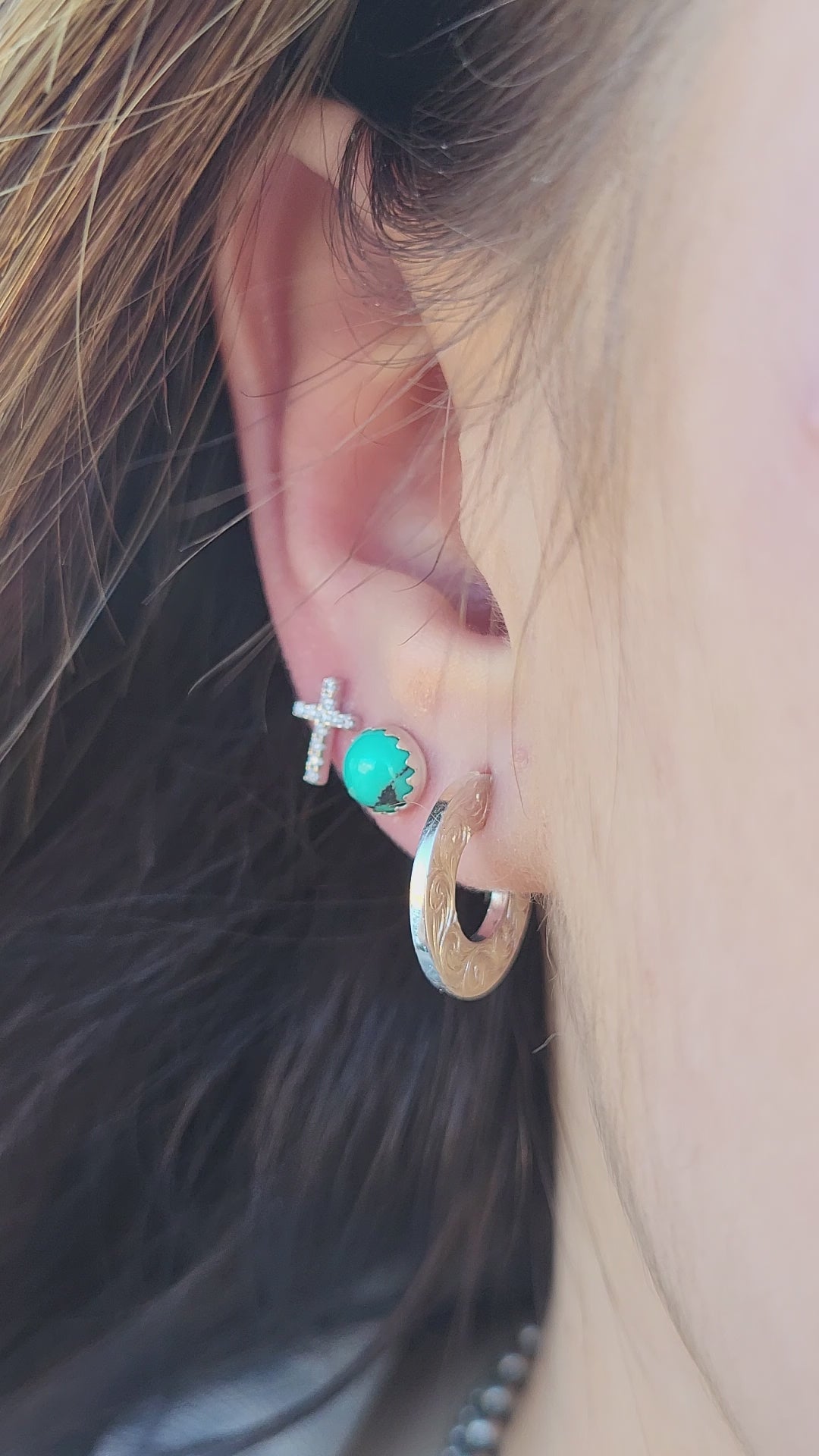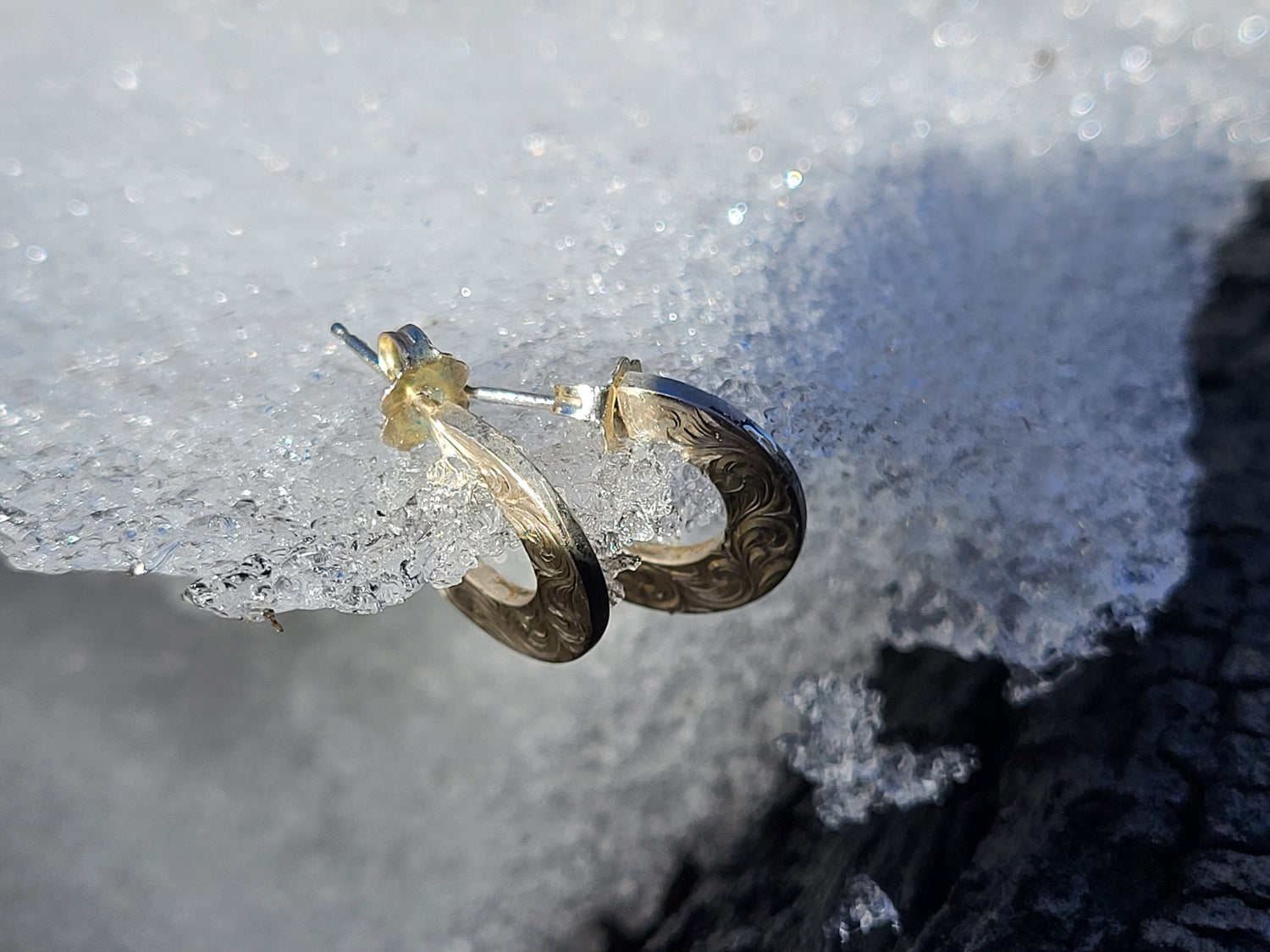 These darling hoops look like a narrow, plain hoop from the front, but when viewed from the side they transform! Fully hand-engraved on both sides with gorgeous western-style scrollwork, these are the ultimate cowgirl accessory, easily working into your daily wear rotation or going formal for special events.