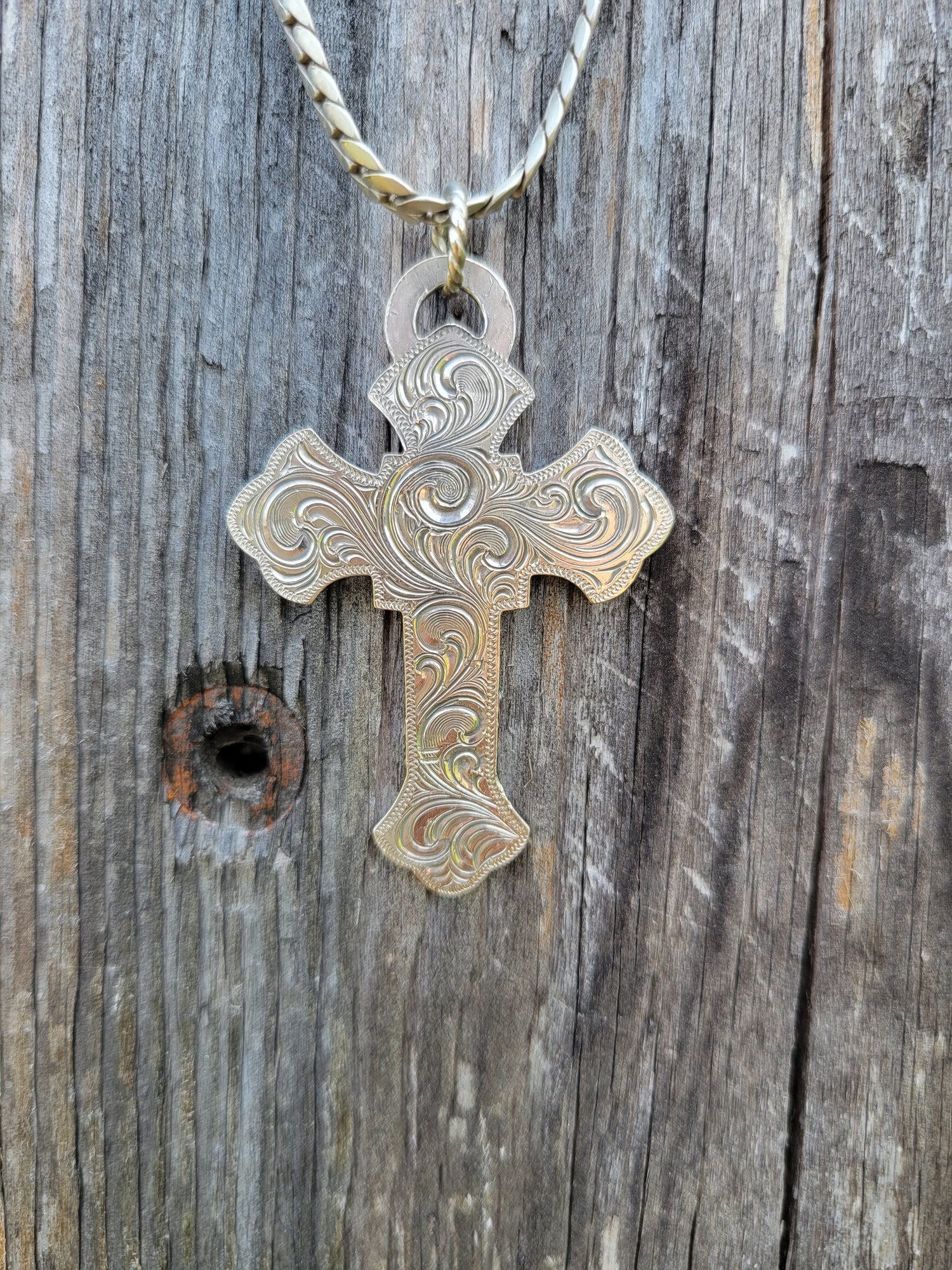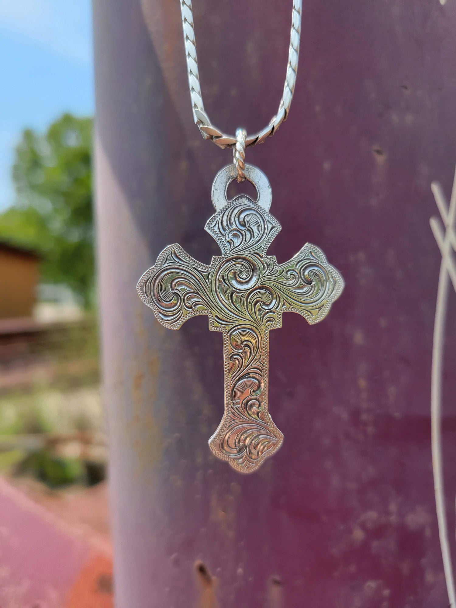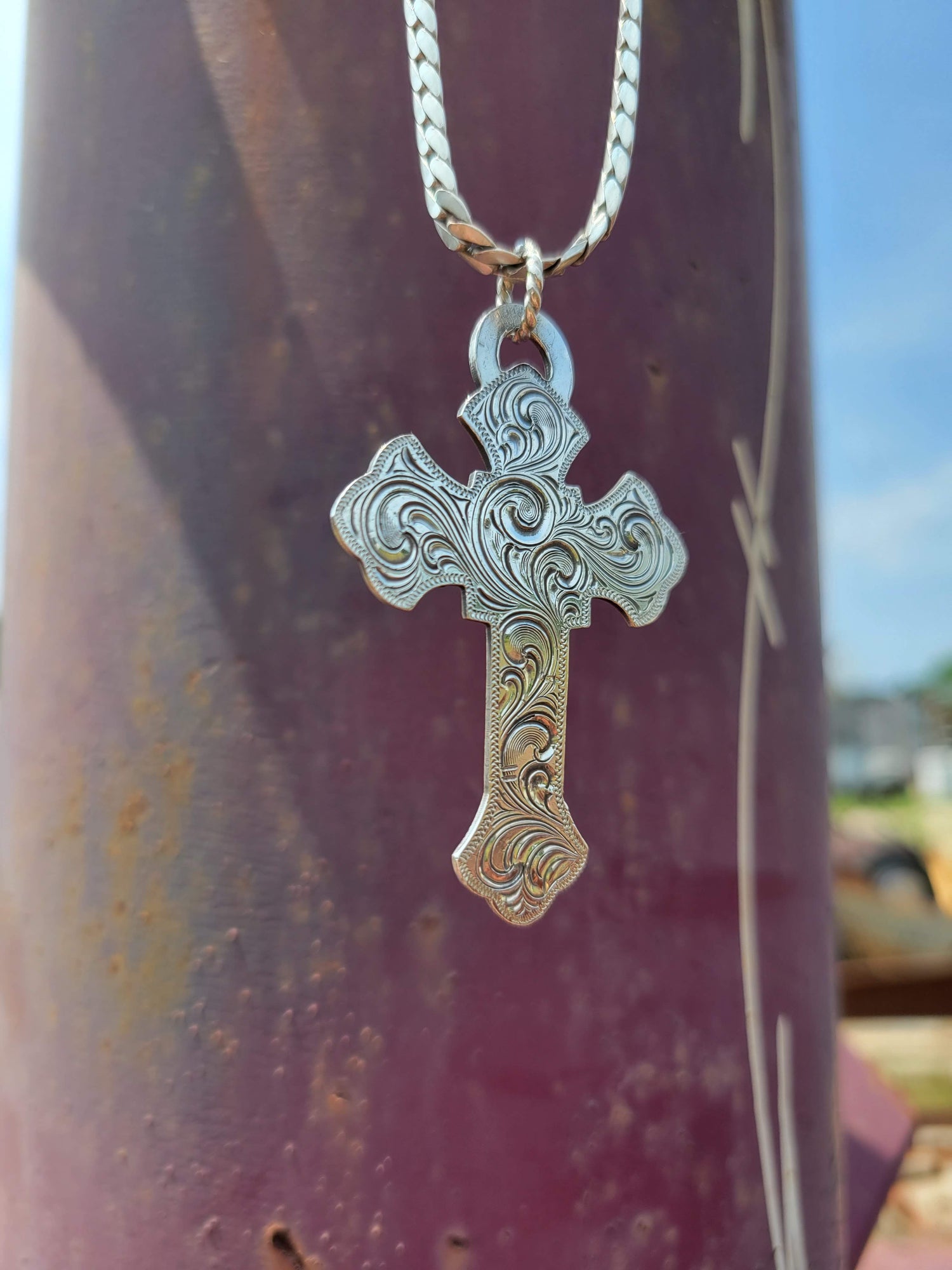 Sterling Silver Hand Engraved Cross Necklace, I believe Cross Pendant, Personalizable, Gifts for him or her