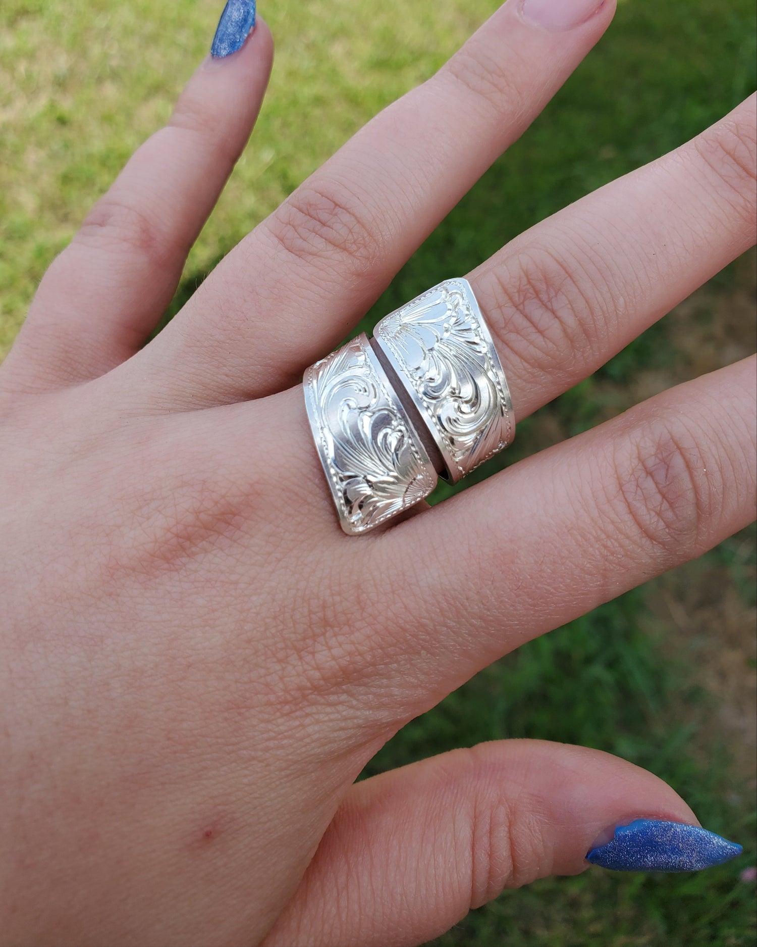 The Stacia: Sterling Silver Wrap Around Ring, Hand Engraved Sterling Silver, Gifts for Her