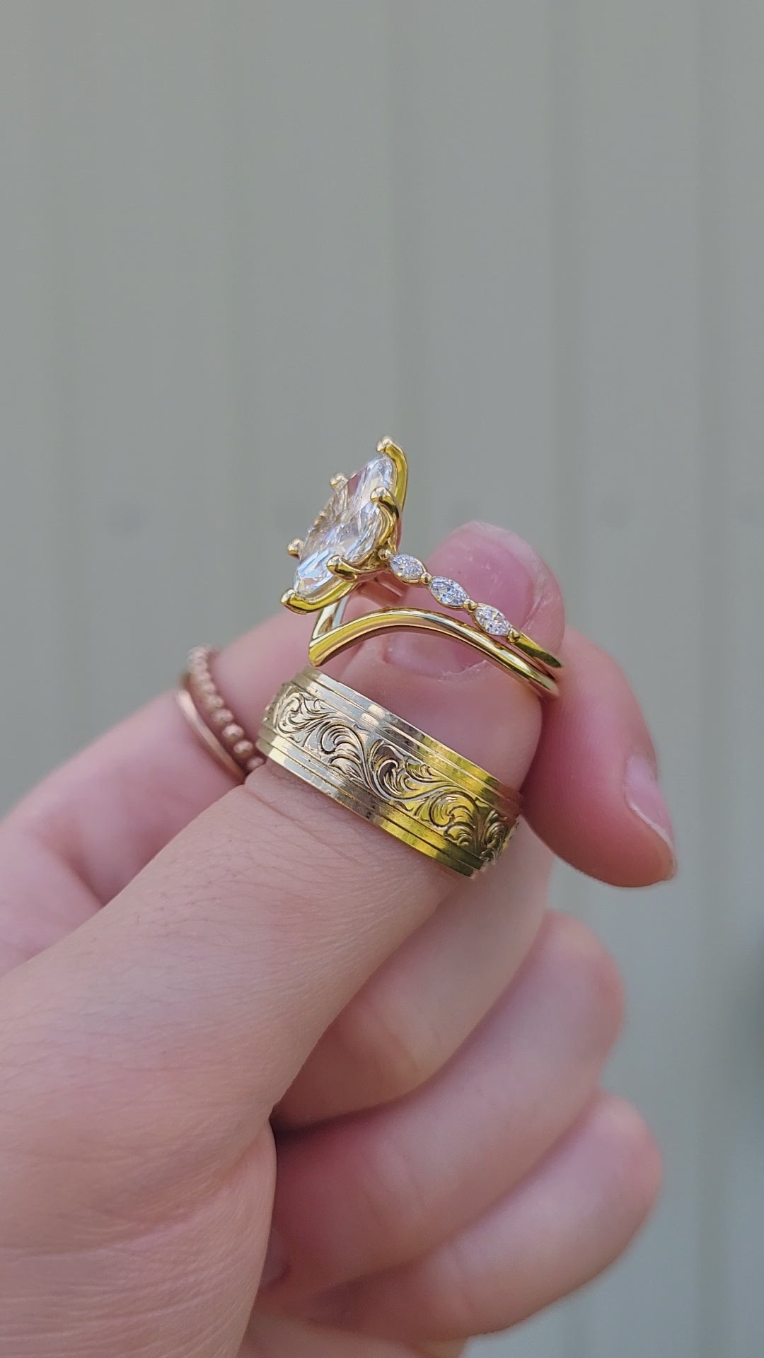 The Alicia: 2 ct to 2.75 ct. 10K, 14K, or 18K Yellow Gold Marquise Engagement Ring, Western Engagement Ring, Cowgirl Ring, Marquise Accented Dainty Engagement Ring
