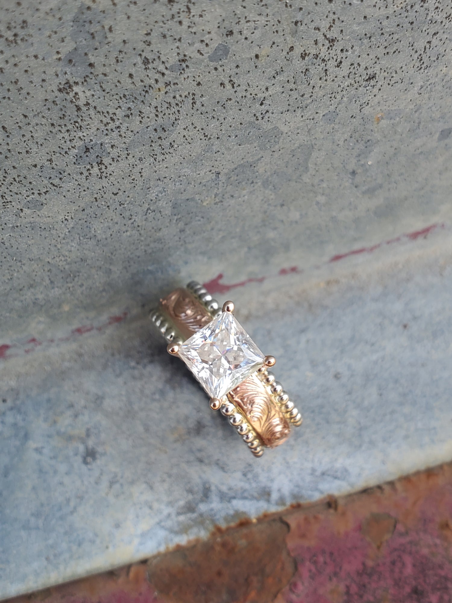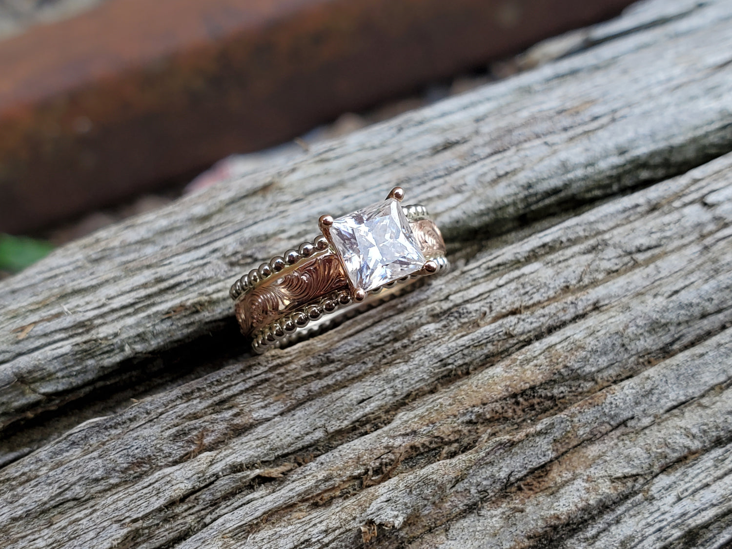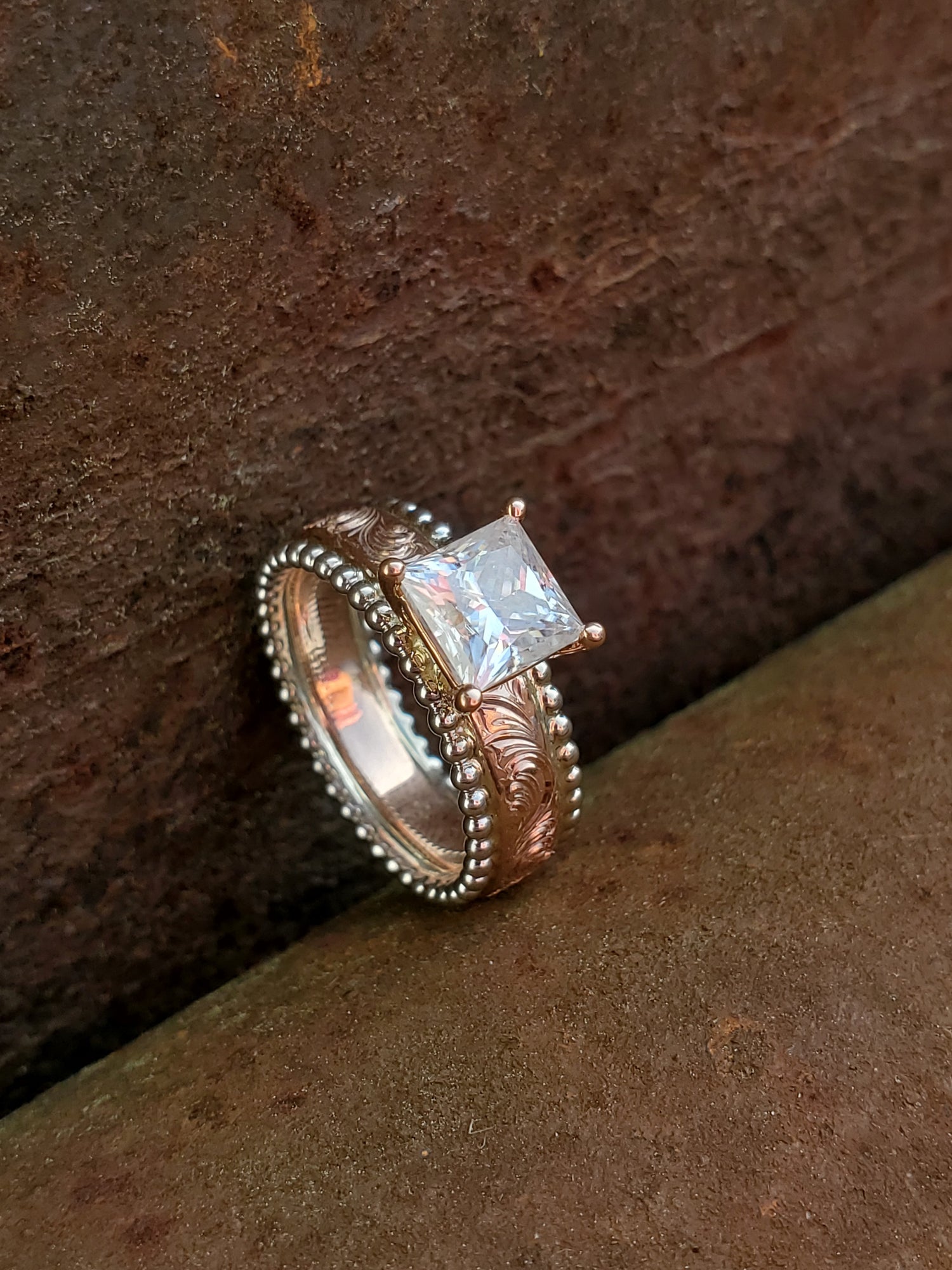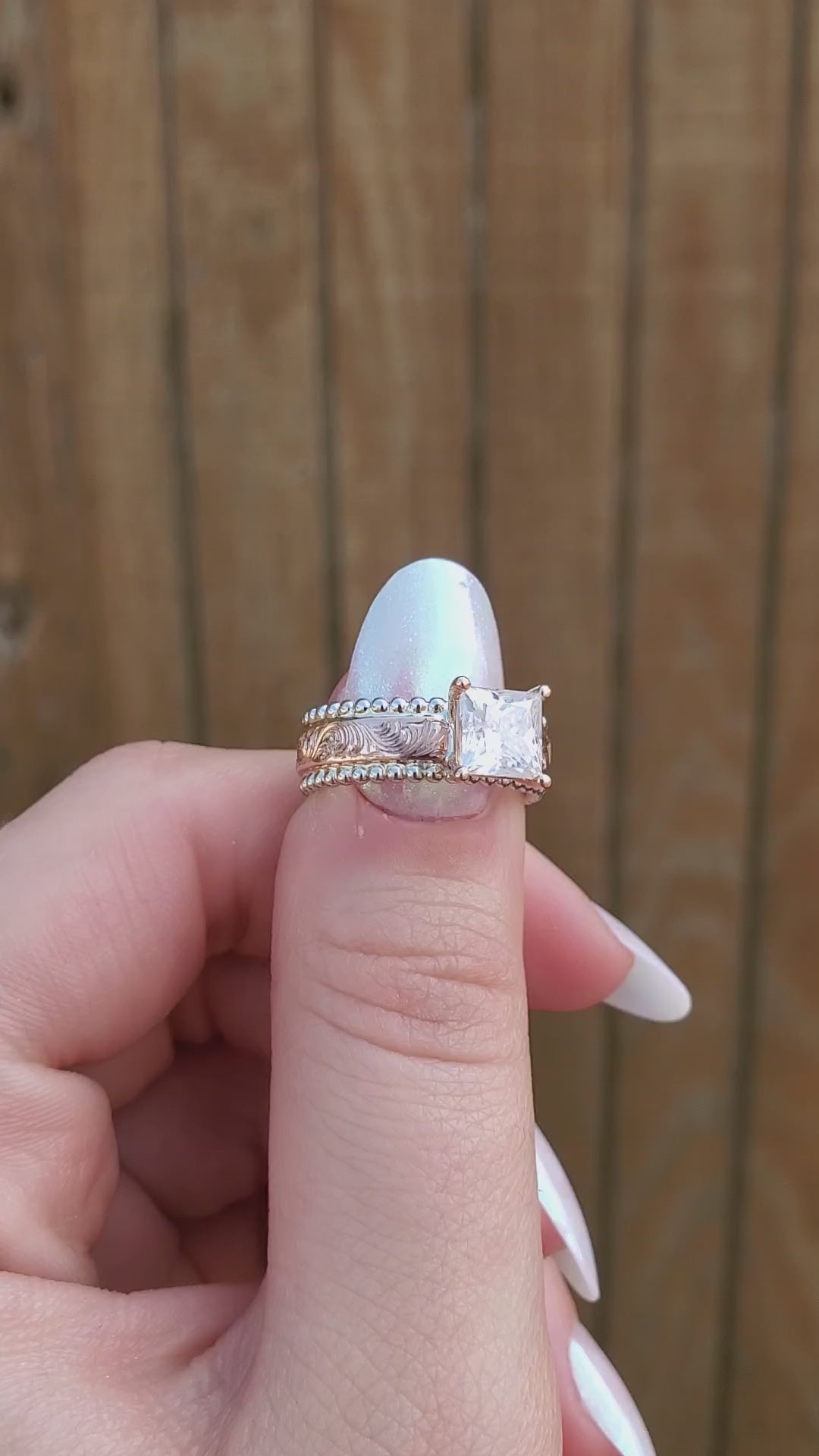 The Brinley: Bead-Edge Engagement Ring with 1.25 CT Center Stone, Western Engagement Ring, Cowgirl Wedding Ring, Hand-Engraved Rose Gold Engagement Ring