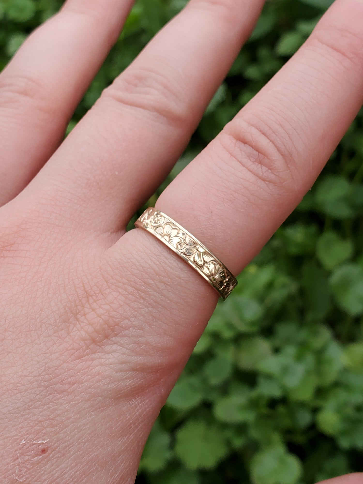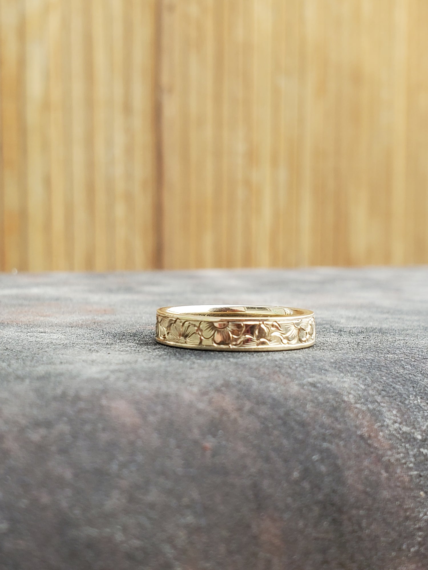 The Carnation: Narrow Floral Engraved Yellow Gold Band, Western Wedding Band, Cowgirl Wedding Ring, Engraved Flower Ring