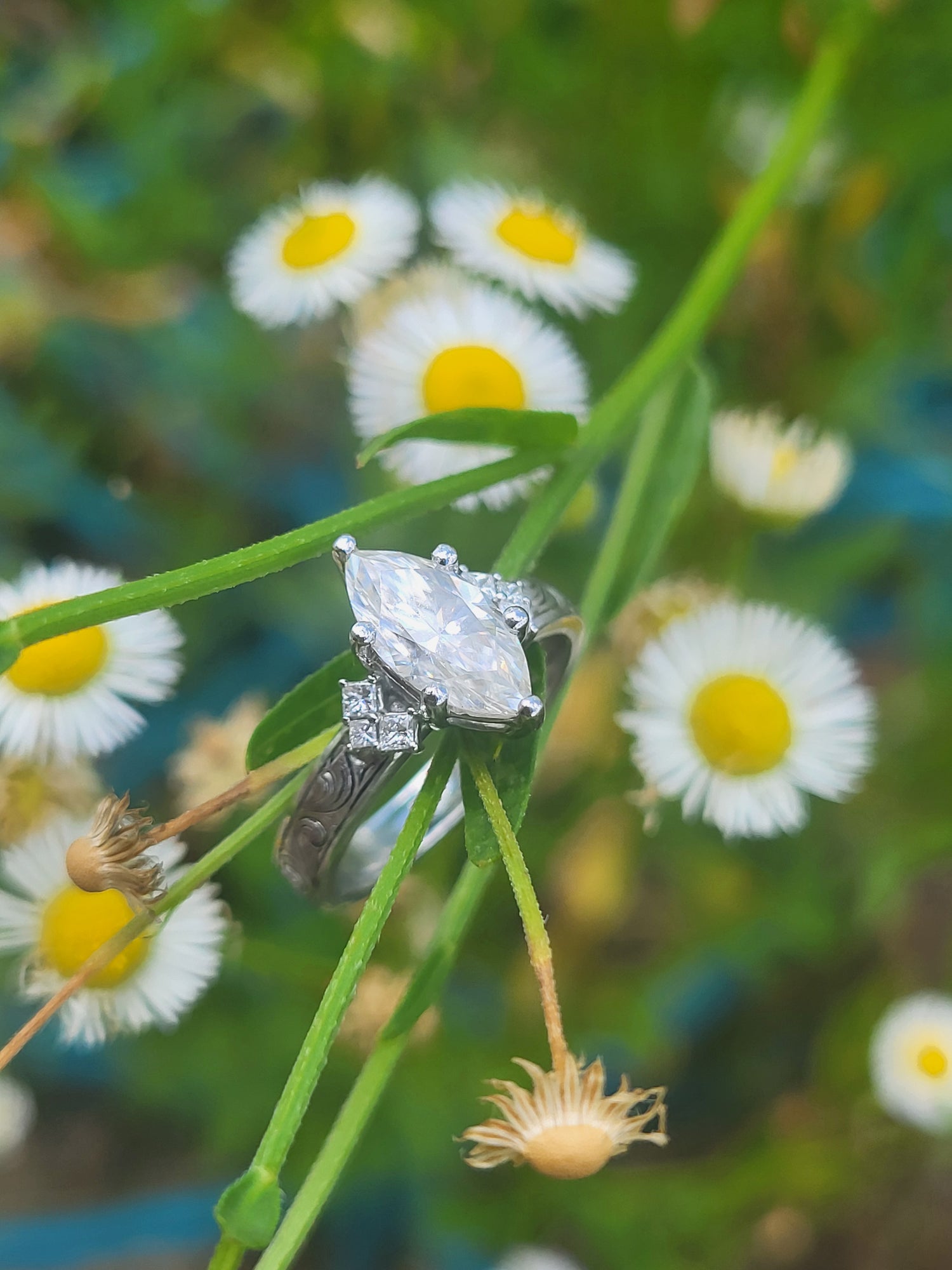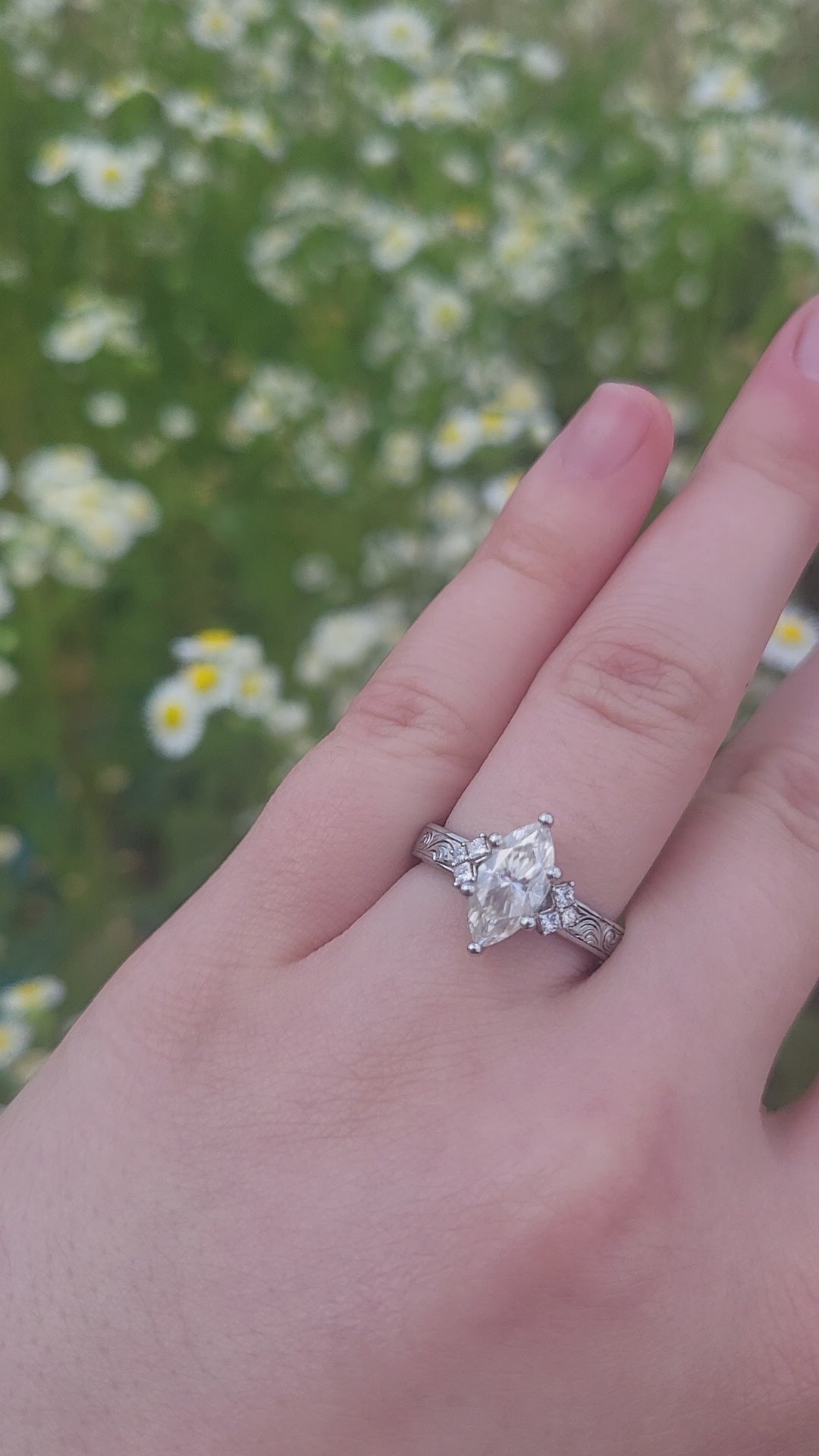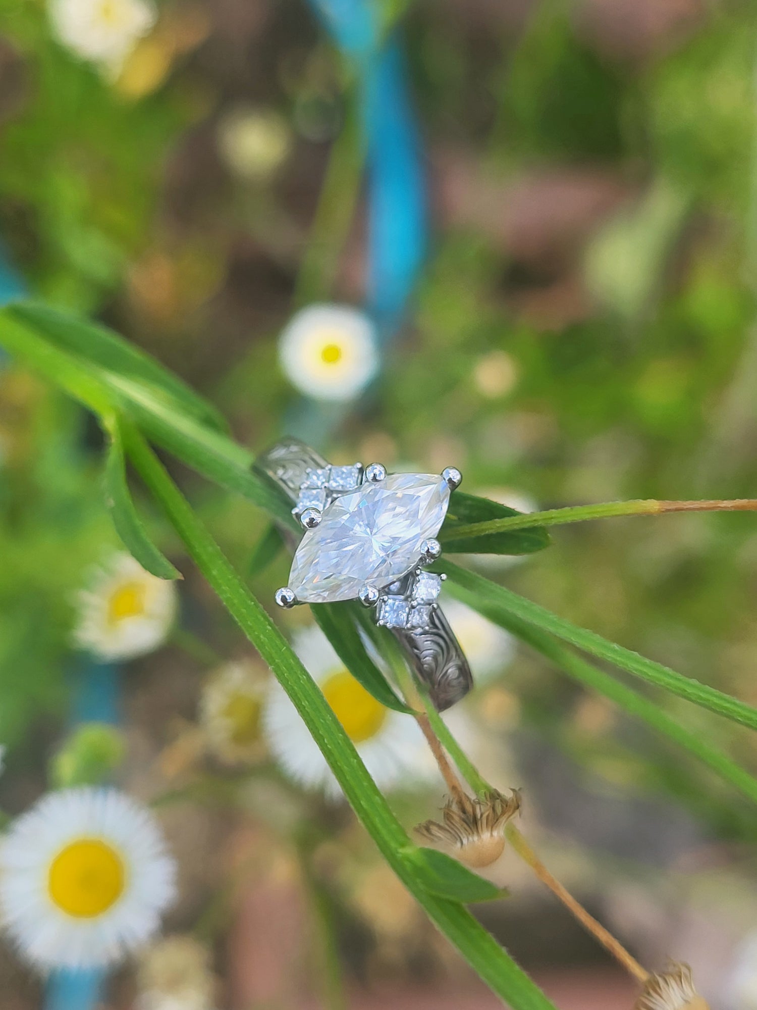 The Delaney: 1 to 1.75ct Three-Stone Engagement Ring, 10K, 14K, or 18K White Gold Engagement Ring with 1ct to 1.75ct Marquise Center, Western Engagement Ring, Cowgirl Engagement Ring, Princess Cut Accents