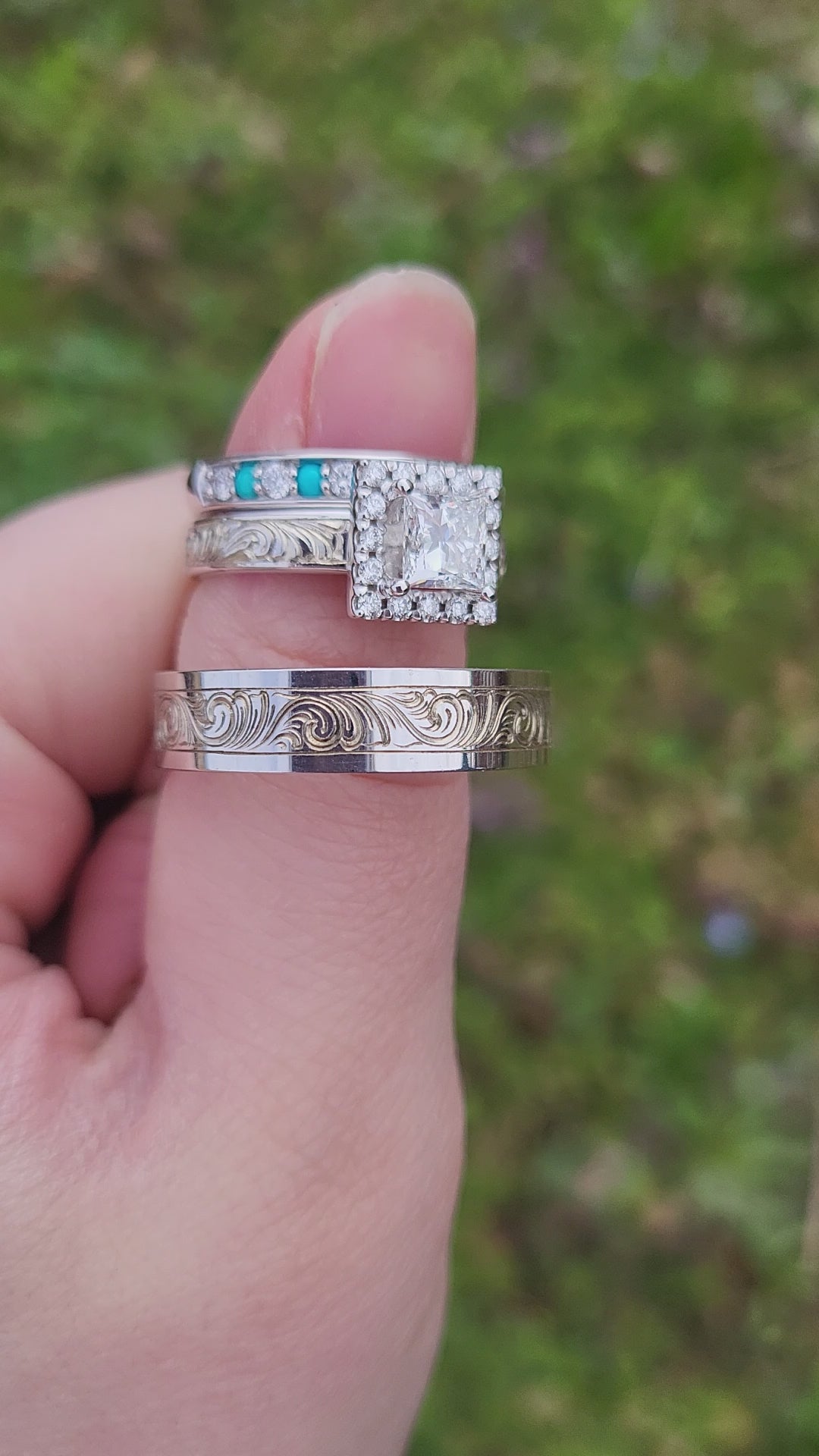 Individual pieces may vary slightly from the pictured item. We make each piece one at a time, for every order. Because of this, your final piece may vary slightly from the picture and the engraving style may be adjusted slightly to fit your ring size or customizations. Please allow ample time for shipment. Refer to the banner at the top of the page to see our current turnaround time.