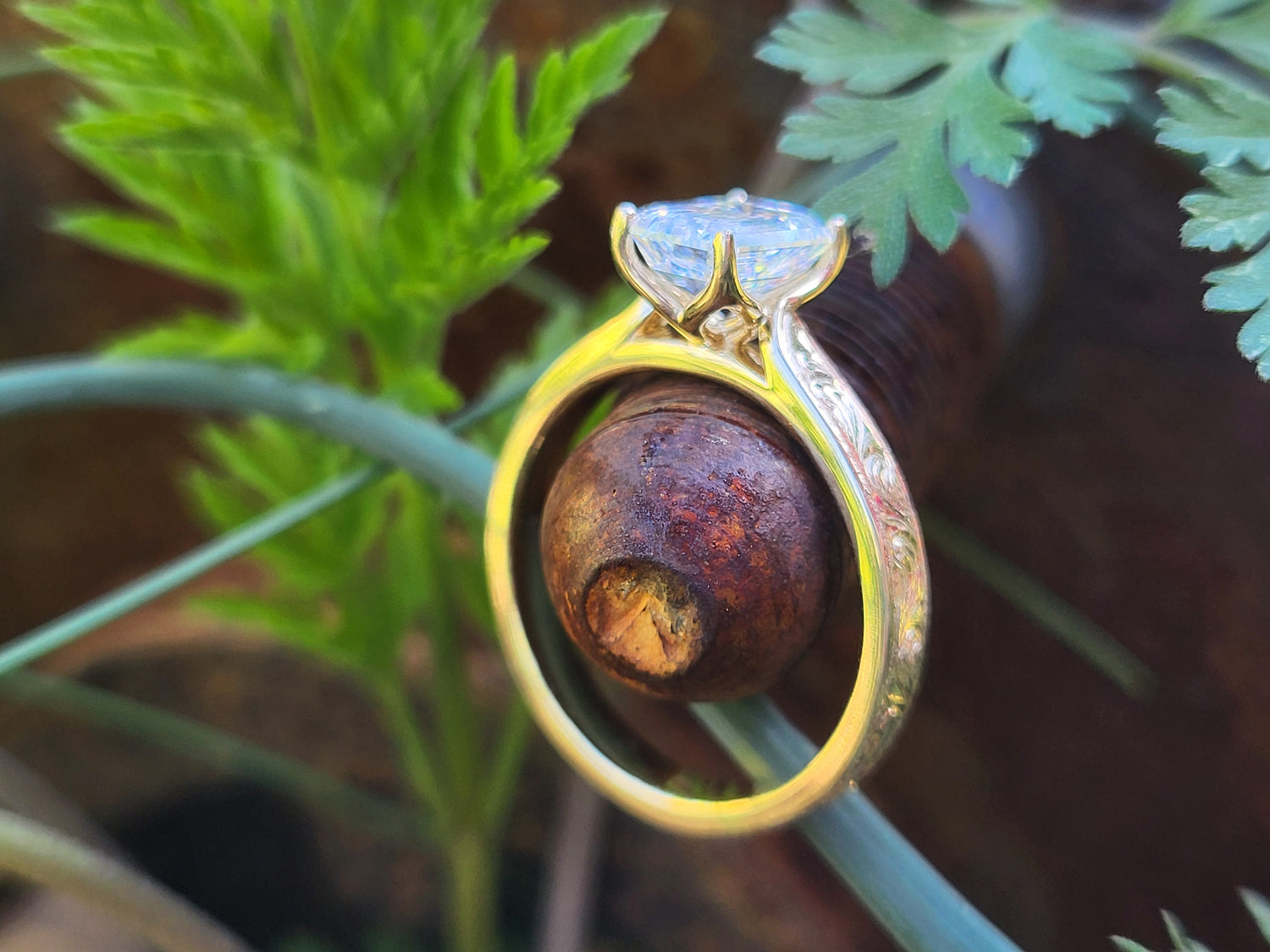 Last photo shown with the grace in 10K yellow gold; and the ring in the photos is with a 1.5ct center!
