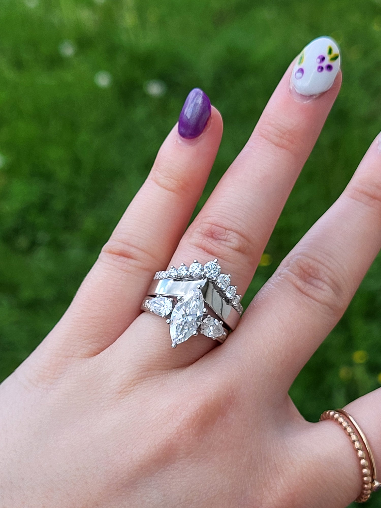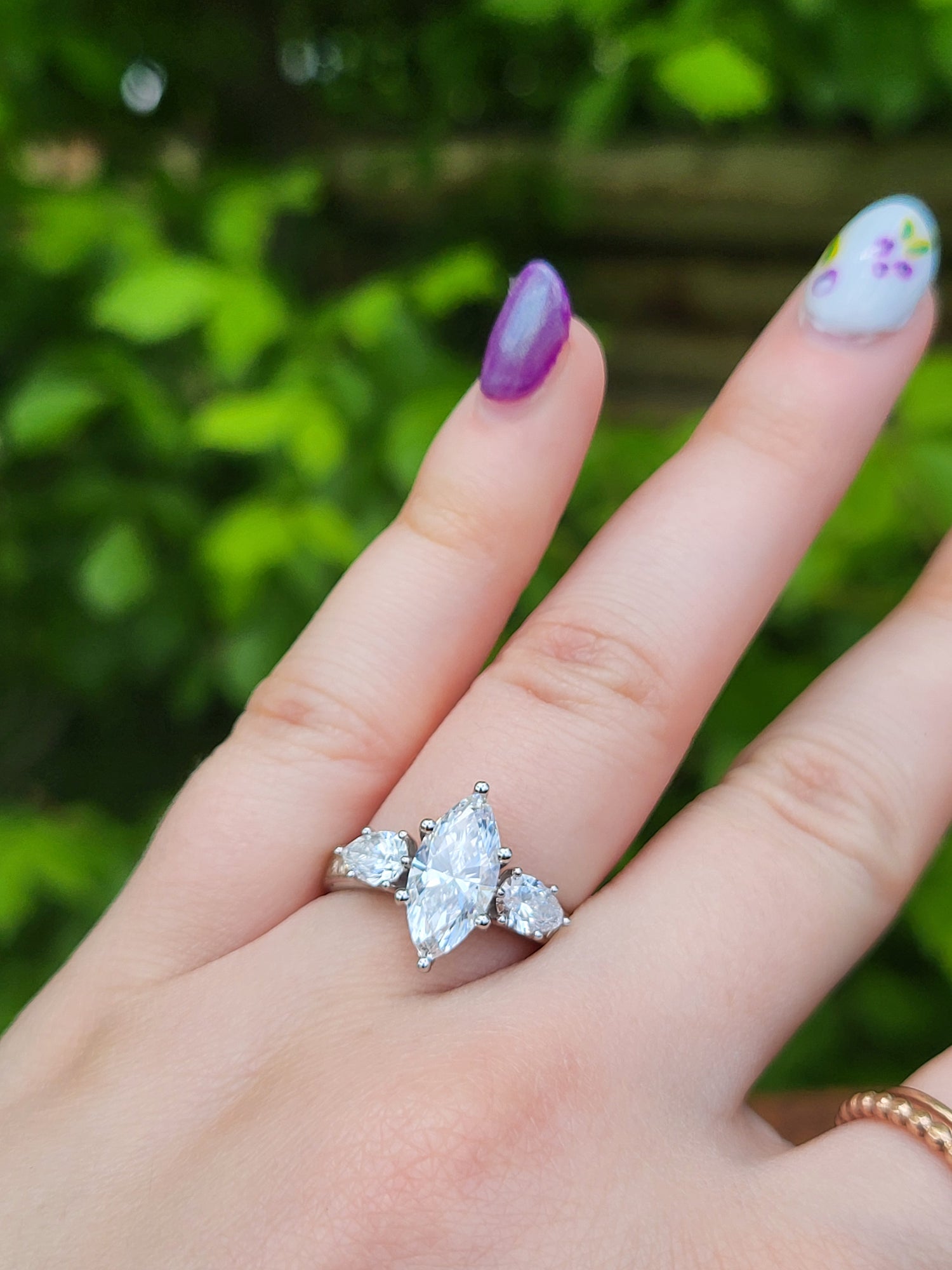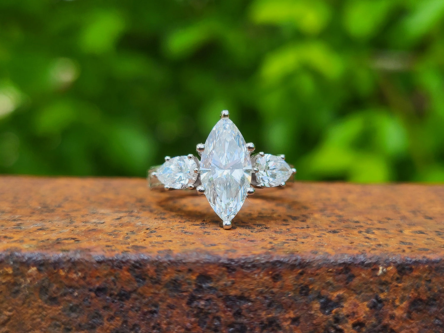 The Jena: 1 to 1.75ct Three-Stone Engagement Ring, 10K, 14K, or 18K White Gold Engagement Ring with 1ct to 1.75ct Marquise Center, Western Engagement Ring, Cowgirl Engagement Ring