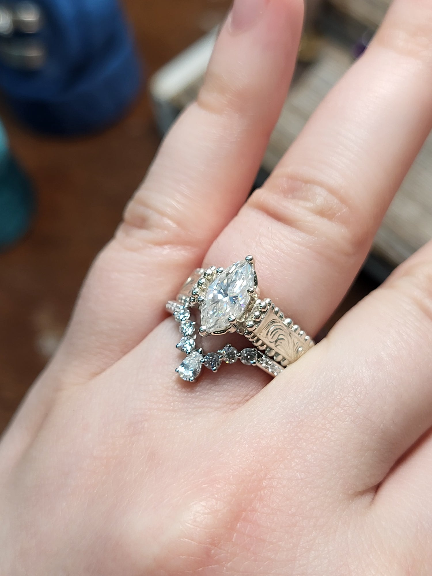 Please refer to the banner at the top of the page to see our current turnaround time. This ring is available in quarter sizes as well. Please leave which quarter size in the notes section at checkout, or send us a message. We can also make changes to this ring if you'd like to customize it- just send us a message to get started!