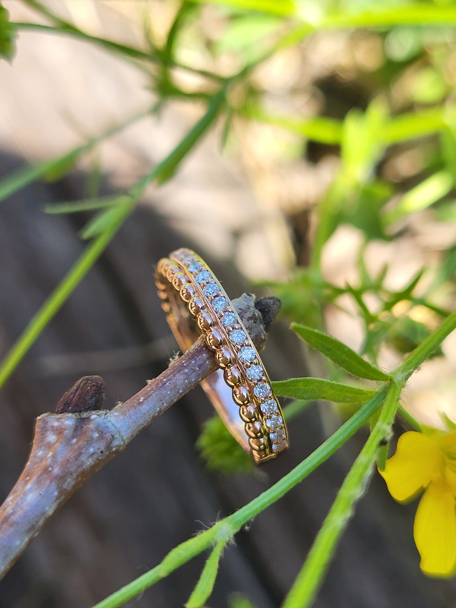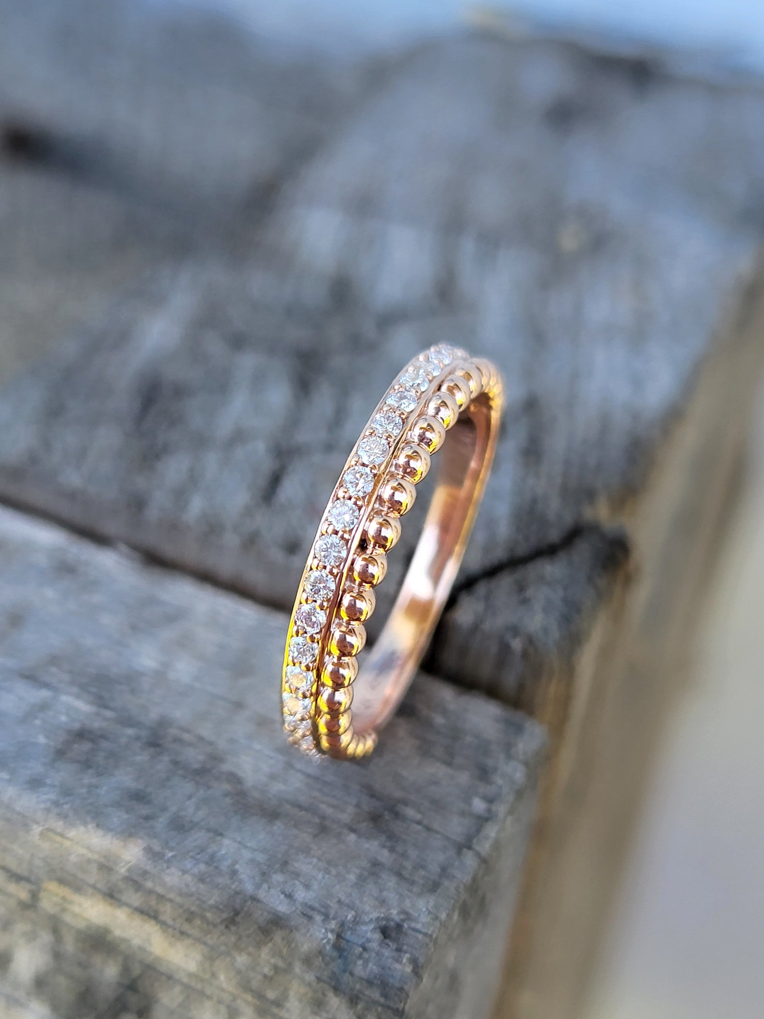 The Rosa: Diamond and Rose Gold Beaded Band, Western Wedding Band, Stackable Cowgirl Ring, Western Band for her