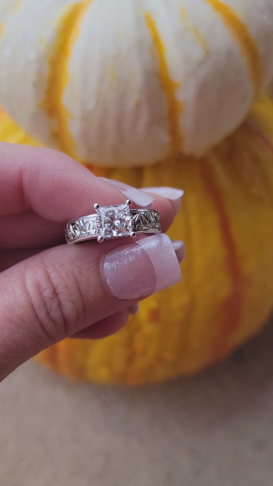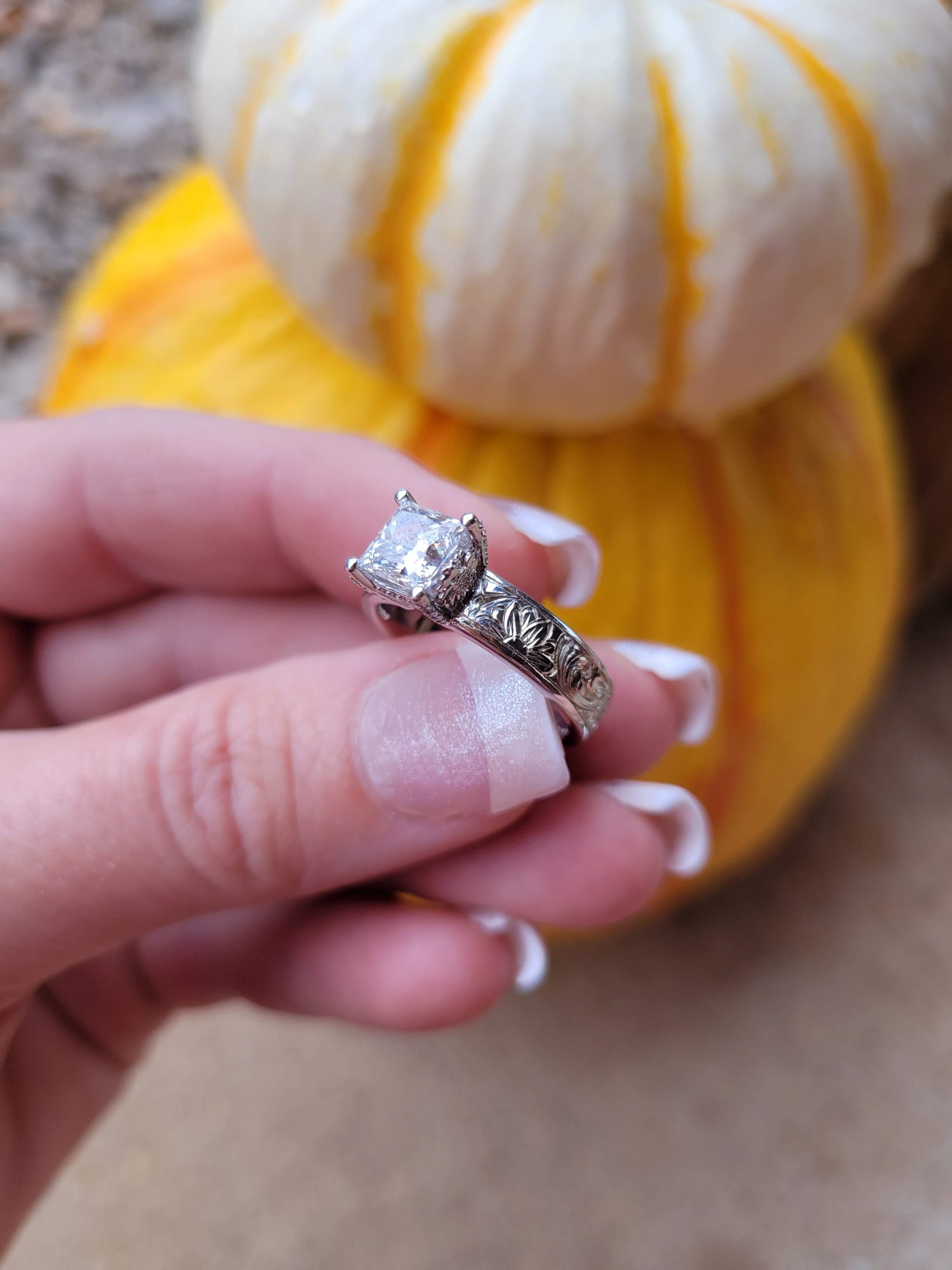 The Solana: Floral Engagement Ring, Sunflower White Gold Ring, Hand-Engraved Sunflower Engagement Ring, Western Bridal Ring, Cowgirl Ring
