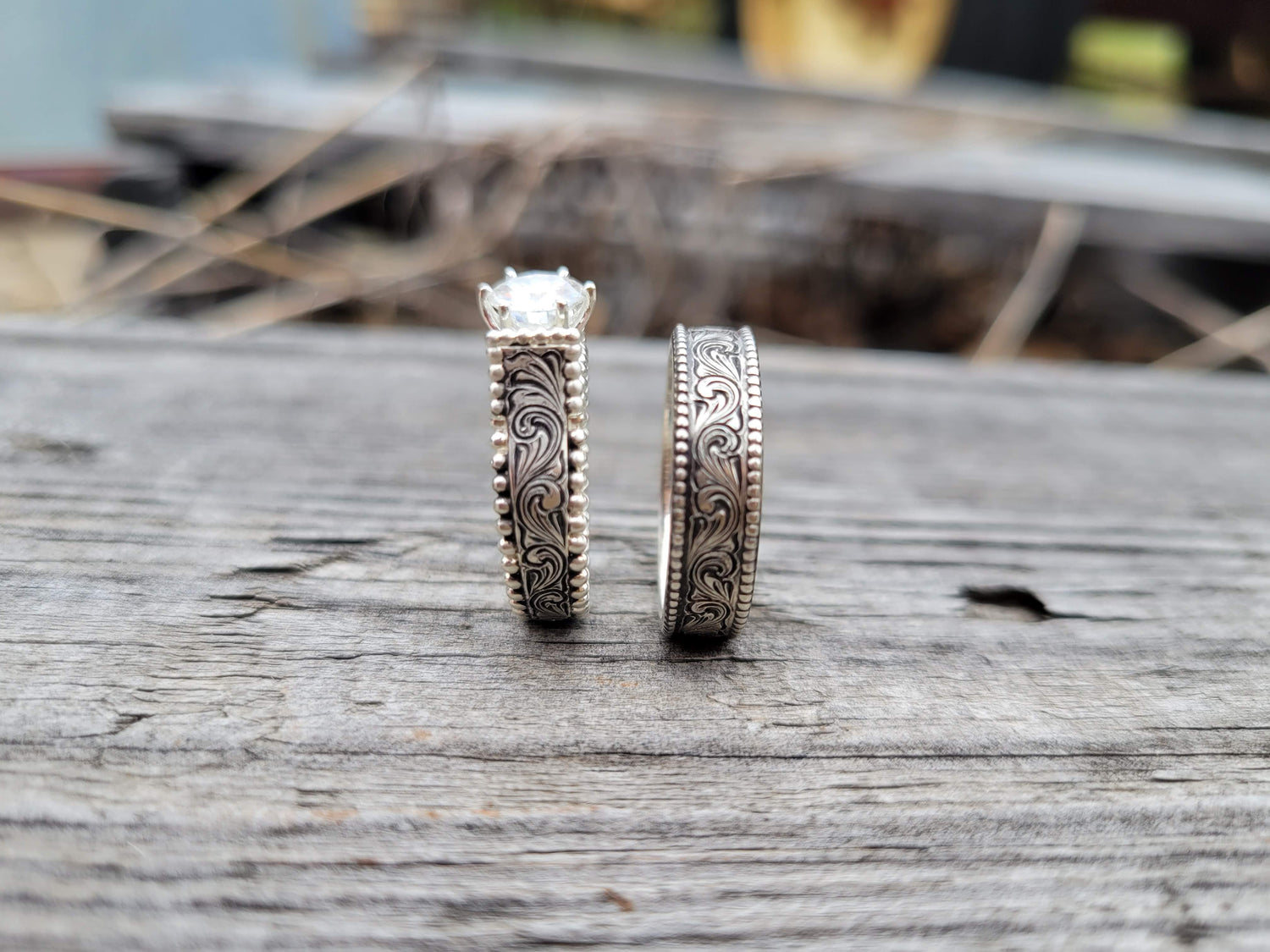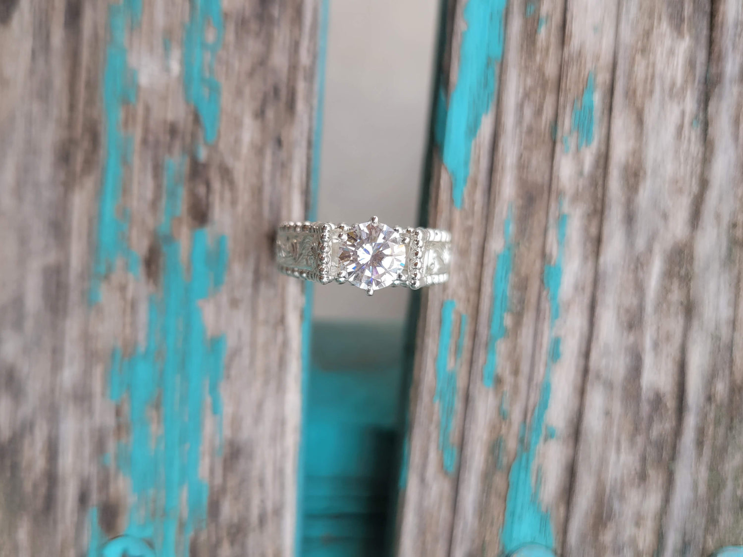 The Taylor: Sterling Silver or 14K White Gold Western Engagement Ring, Cowgirl wedding rings, sterling silver engagement ring, Unique Handmade Engagement Ring